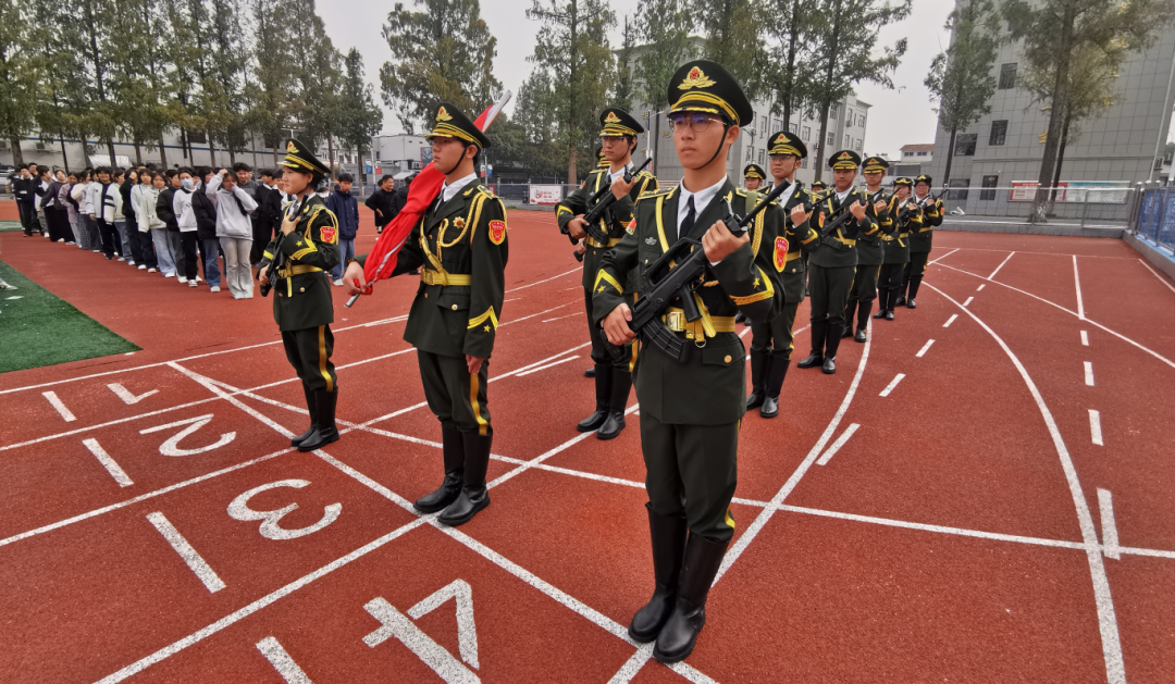 随着9时40分的钟声临近,仪式正式拉开帷幕。学校国旗护卫队的同学们身着整齐服装,迈着铿锵有力的步伐,稳稳护卫着五星红旗走向升旗台。