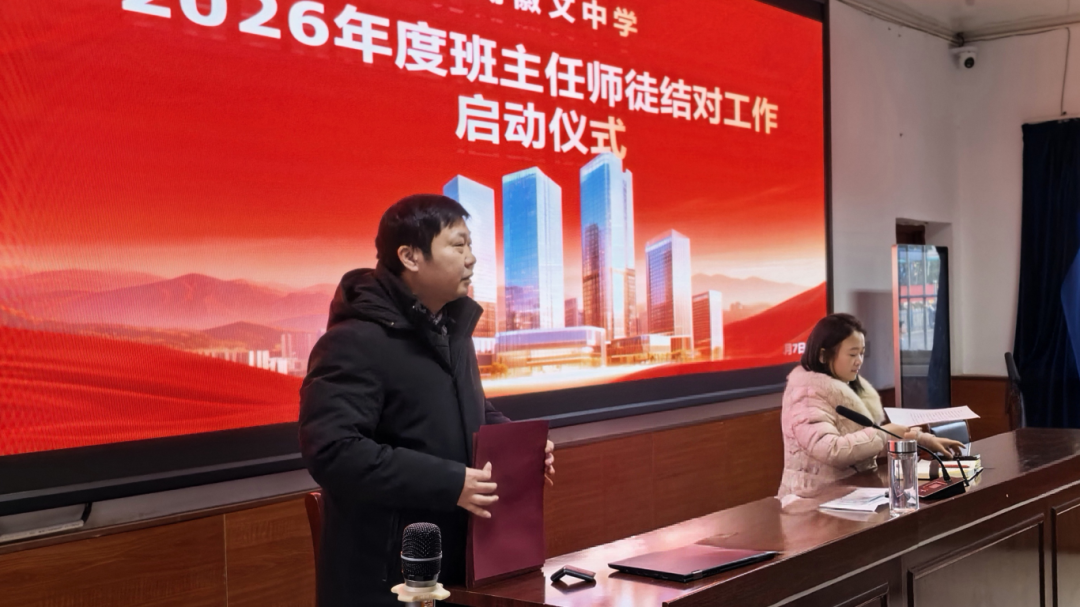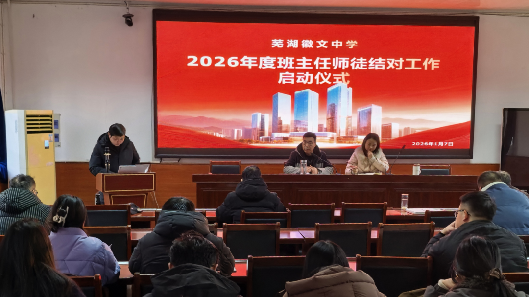 1月7日下午,芜湖徽文中学2026年度班主任师徒结对启动仪式在学校报告厅隆重举行,仪式由党支部书记胡小五主持。