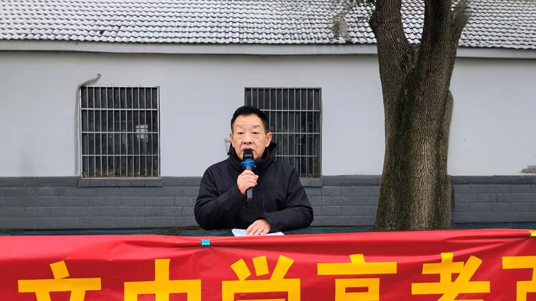 随后,教务处李海天主任深情寄语高三学子。他鼓励大家:高考不是少数人的独木桥,而是每一位奋斗者的舞台。不必纠结过往的迷茫,从百日誓师起,接纳自己、超越自己,每天进步一点点,百日亦可逆风翻盘。他承诺,全体高三教师将做同学们最坚实的后盾,答疑解惑、分担压力,陪伴大家走完最后征程。