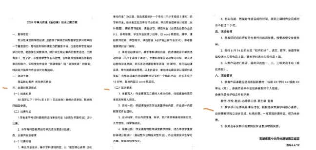 从2024年5月起学校各教研组在方永停等组长的带领下号召组内教师人人参与,认真准备,踊跃参赛。