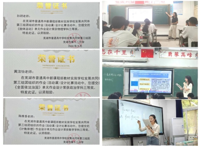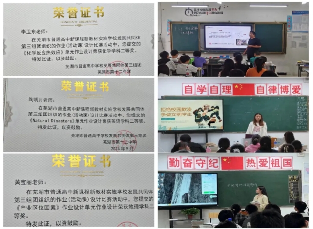 2024年7月由芜湖市十二中组织专家组对普高共同体第三组团作业设计进行匿名评审,按评分高低评定一、二、三等奖,我校七个学科共七件作品获奖。